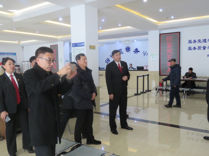 督察组先后检查了立案信访大厅、诉讼服务中心等场所,详细询问和了解了首问责任制落实、信访值班等情况。在诉讼服务中心重点观看了“打官司不求人”工作宣传图板、“法律百宝箱”、“诉讼明白路”和“法律直通车”等相关六项措施。