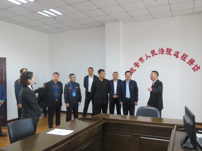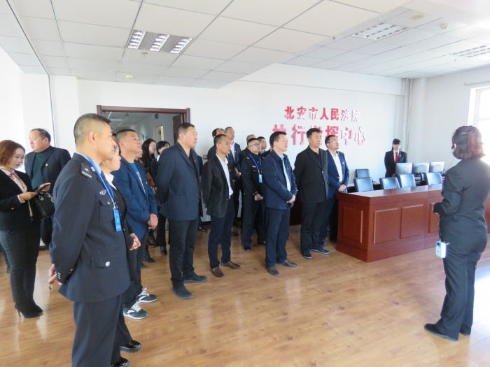 东胜乡两级村干部先后参观了北安法院“从延安到北安”红色文化长廊、安检中心、诉讼服务中心、青少年法制教育基地、法警备勤室、科技法庭、羁押室、少年法庭、家事法庭、信访视频接待室、执行指挥中心、党员活动室、法警体能训练中心、图书阅览室等地,全面了解法院相关工作。