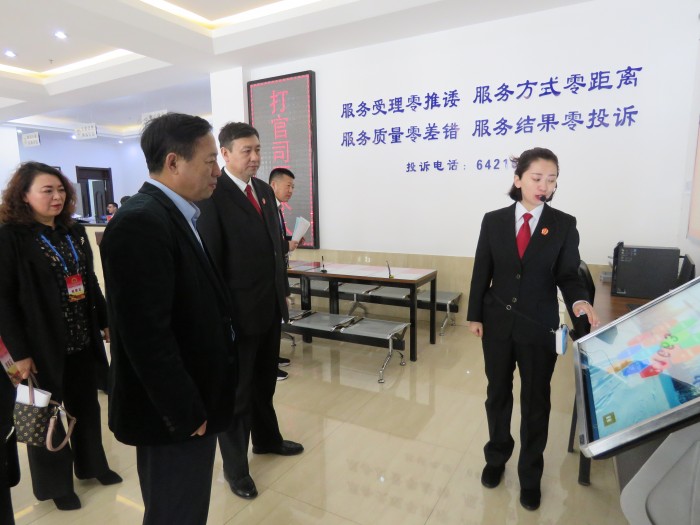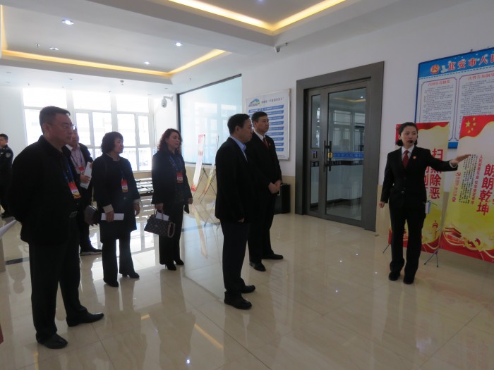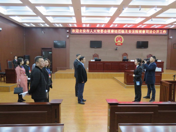 4月19日上午,北安市人大常委会副主任王春清带领法工委主任孟晓妍、法制委主任委员赵晓平、地市两级人大代表9人组成的视察组,在北安法院视察司法公开工作。