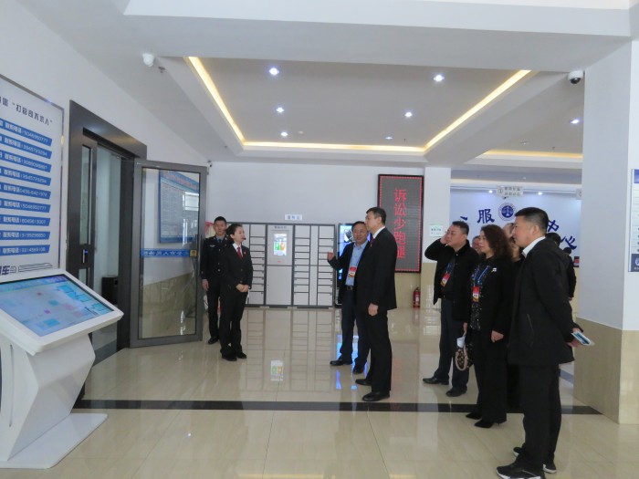 北安法院党组书记、院长于树军,党组成员、副院长刘伟国陪同视察组参观了诉讼明白路、法律百宝箱、维权直通车、安检中心、诉讼服务中心大厅、1号审判法庭、少年审判圆桌法庭、家事法庭、执行指挥中心、荣誉室,并观看《践行司法为民 兑现“让老百姓打官司不求人”承诺 北安法院在行动》宣传片。通过参观使视察组更加深入、全面地了解北安法院诉讼服务、信息化建设、办公基础建设等司法公开工作情况。随后,视察组和北安法院部分干警召开了座谈会。
