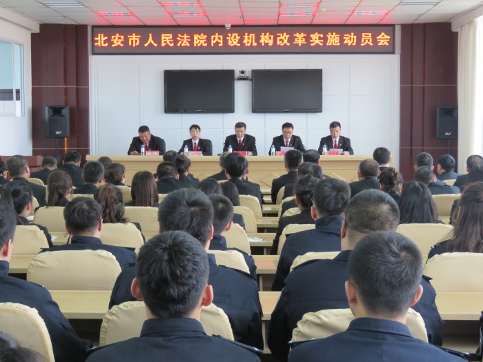 会上,传达了最高院、省法院、省人社厅关于内设机构改革的相关文件、批复,宣读了《北安市人民法院内设机构改革方案》,公布了北安法院审判、执行团队组建情况和各团队人员,并对2019年各项审判指标情况进行了通报。