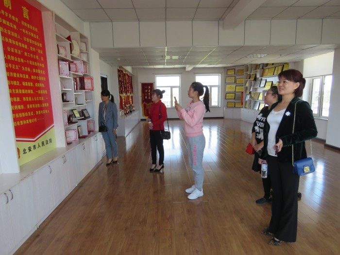 讲解员还带领大家参观了北安法院党员活动室,介绍了北安法院党总支及各支部党建工作开展及支部党员学习、对入党积极分子培养工作的开展情况,展示了北安法院党建内业材料及党员活动学习的相关书籍。宣讲团成员十分赞赏北安法院党建文化,活动形式丰富,内业材料规整,党建文化氛围浓厚。