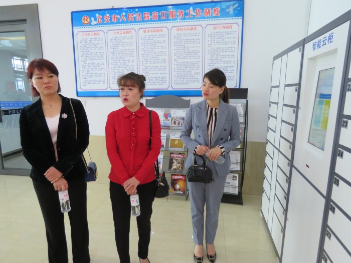 在北安法院诉讼服务中心,讲解员为宣讲团成员介绍了诉讼的流程,重点讲解了北安法院打官司不求人工作,通过在安检中心门前设置宣传栏,为有疑惑的群众解答立案、审判、执行、保全等法律流程,通过设置法律百宝箱,统一裁判标准,并设置法律直通车,公开联系方式,随时解答群众诉求,让老百姓切实感受到在北安法院打官司不用求人。宣讲团成员纷纷为北安法院司法为民,让老百姓感受到司法温暖的做法点赞。