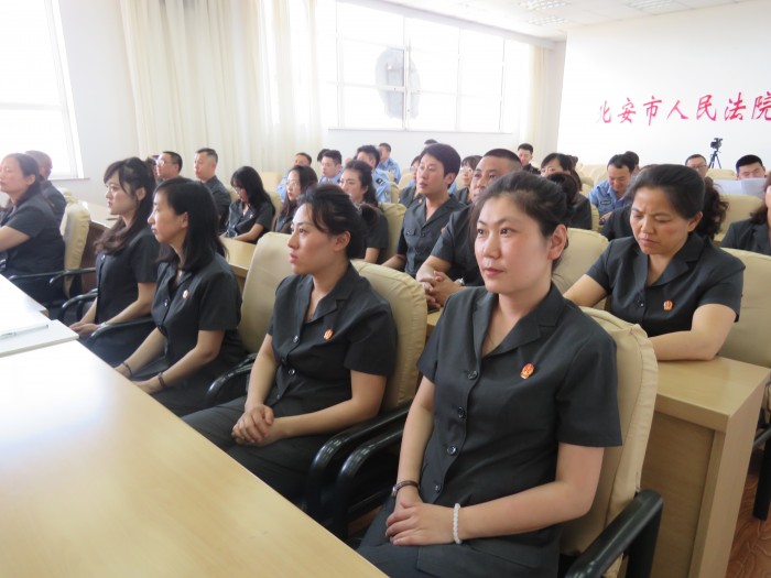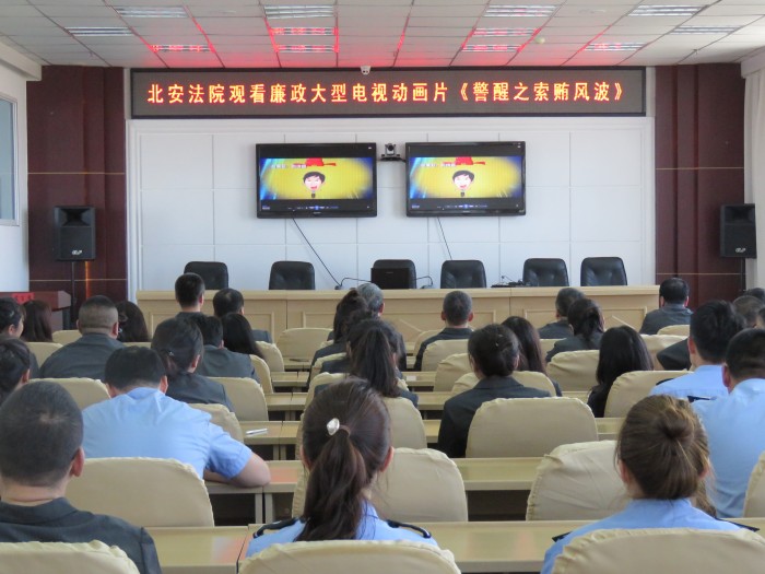 为迎接“七一”党的生日,进一步增强广大党员干警的廉洁自律意识,提高拒腐防变的能力,近日,北安法院组织全体党员干警及入党积极分子集中观看了廉政大型电视动画片《警醒之索贿风波》。