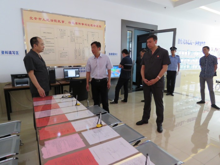 7月4日,北安市政协副主席孟庆宇率政协视察组一行12人到北安法院参观、检查指导工作,政协视察组成员高度评价北安市人民法院诉讼服务中心建设,法庭科技应用、党建文化等相关工作,院党组书记、院长于树军,院党组副书记、副院长崔巍陪同参观。