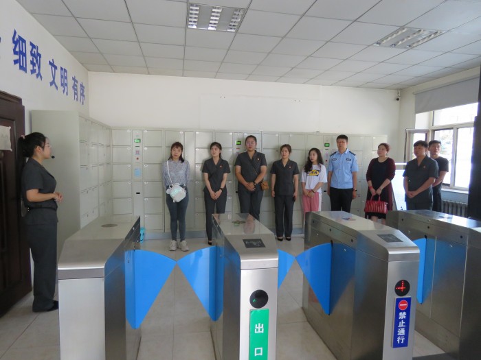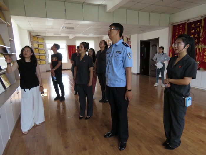在荣誉室讲解员还为9名同志介绍了北安法院近年来取得的各项荣誉,介绍了光荣榜上取得各项荣誉的优秀干警。带领大家参观了法警体能训练中心及图书阅览室,让干警们充分感受到北安法院良好的工作、学习和生活环境。