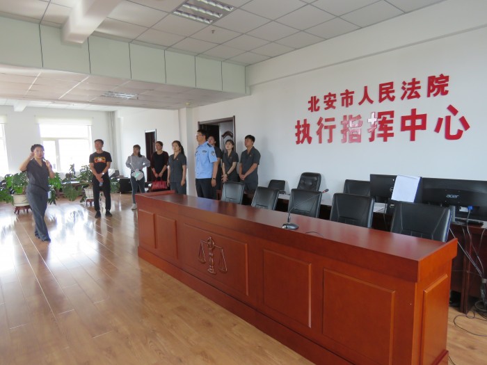 在诉讼服务中心,讲解员为大家介绍了北安法院“打官司不求人”工作开展情况,9名干警纷纷为北安法院建设的“诉讼明白路”“法律百宝箱”“维权直通车”点赞。讲解员还为大家介绍了诉讼服务中心的区域功能,案件受理,繁简分流、诉调对接、集中送达等相关工作。