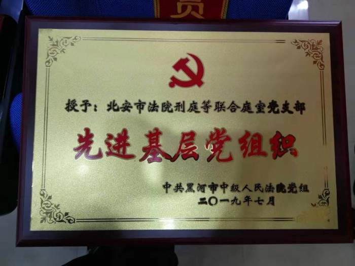 7月24日,在黑河中院召开的全市法院党建暨重点工作推进会议上,北安市人民法院刑事审判庭等联合庭室支部委员会被授予“全市法院优秀基层党组织”,迟晓然同志被授予“全市法院优秀党务工作者”,韩召峰同志被授予“全市法院优秀共产党员”荣誉称号。