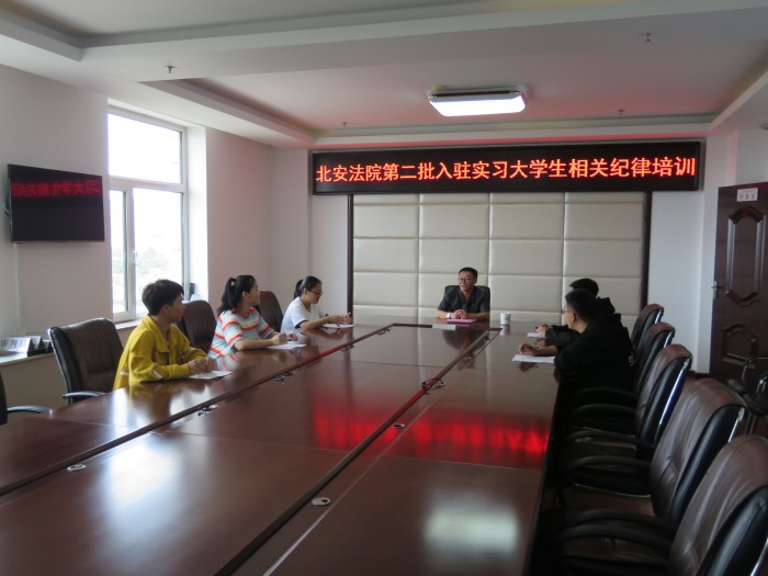 为使第二批入驻顶岗大学生更快地转变角色,适应法院作为审判机关的工作要求,更好地发挥实习单位传、帮、带的作用,8月29日,北安法院举办第二批入驻实习大学生审判纪律、工作纪律、保密纪律等相关纪律培训班,5名黑河学院入驻实习大学生参加了培训。