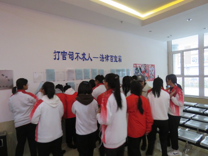 在诉讼服务中心,讲解员为同学们上了一堂生动的法制课。详细讲解了诉讼的流程,介绍了诉前调解对当事人的好处。通过图版和相关纸质材料,介绍了在北安法院打官司不用求人。同学们还就起诉书的书写、司法调解的功能及申请执行的流程进行了提问,讲解员一一为大家解答。