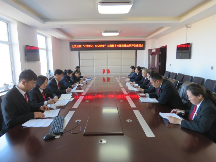 按照市委“不忘初心 牢记使命”主题教育工作安排部署,11月1日,北安法院组织召开“不忘初心、牢记使命”主题教育专题党课效果评价座谈会,市委“不忘初心、牢记使命”主题教育第六巡回指导组丁虹和王亚华两名同志及北安法院各支部党员干警参加会议,会上还对班子成员专题党课进行评分。