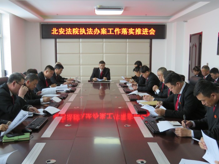 2019年12月2日下午,北安法院召开执法办案落实推进会,院党组成员、专职审委、全体员额法官参加了会议。