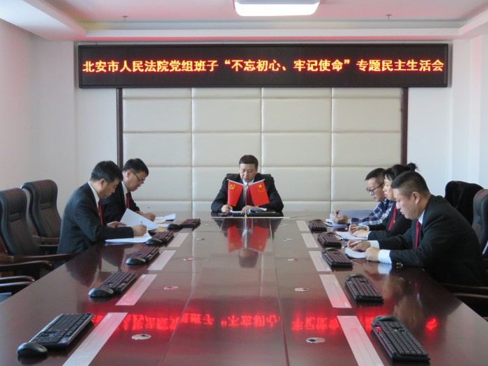 12月5日下午,北安法院党组召开“不忘初心 牢记使命”主题教育专题民主生活会。北安市委主题教育第六巡回指导组王宏峰出席会议并作指导点评。北安法院党组书记、院长于树军主持会议,党组成员参加了会议。