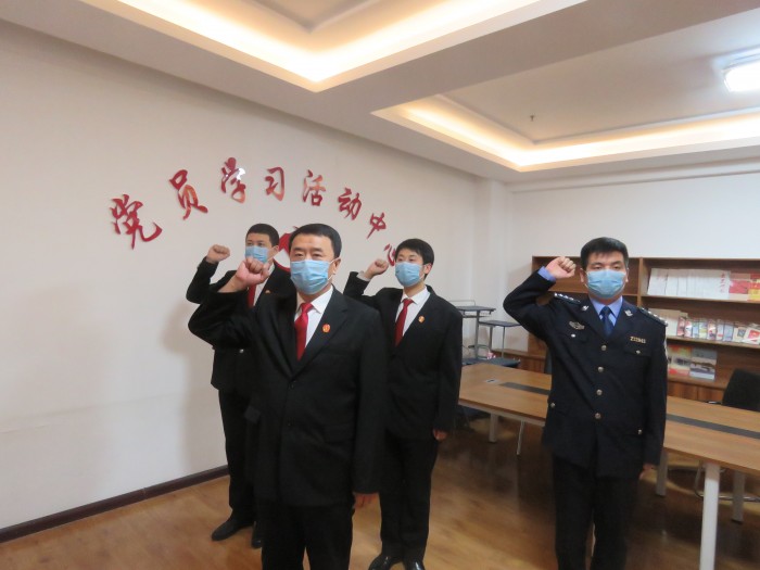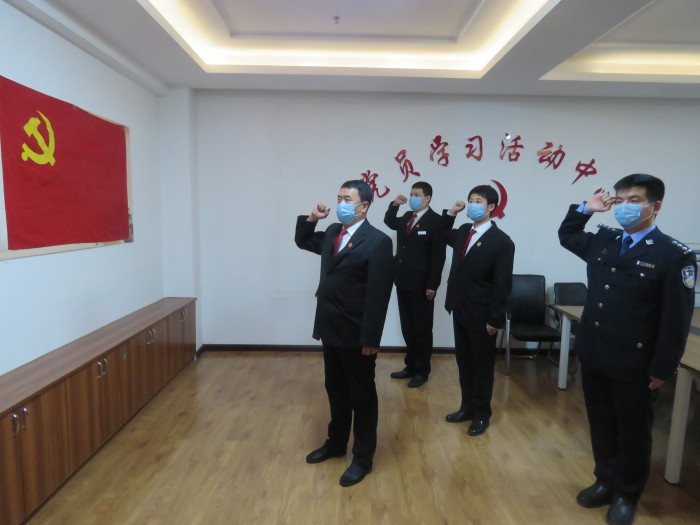 2月16日,在北安市人民法院七楼党员活动室,一场特殊的入党宣誓仪式正在举行,在抗击疫情的战斗中,北安法院三名干警奋勇当先,冲锋在前,表现出色,经组织批准火线加入中国共产党。