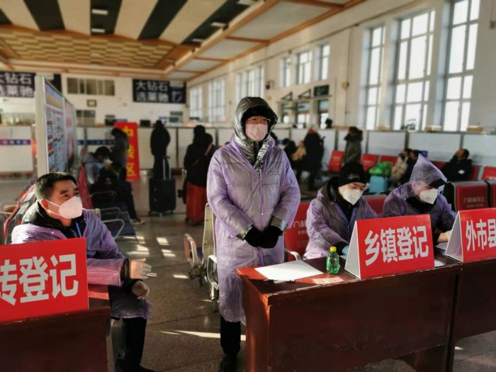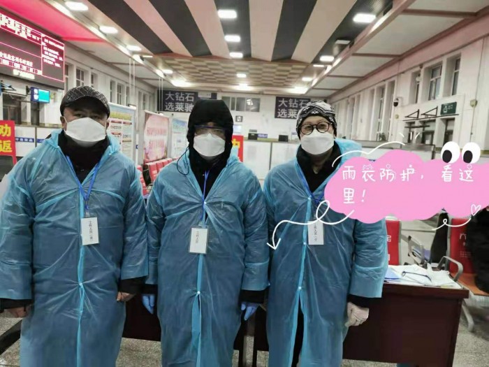 自新冠病毒疫情防控工作开展初期,医疗物资紧缺,防护服、口罩、手套、护目镜供不应求,疫情防控的关键时期,火车站旅客较多,人员复杂,北安法院干警没有因为医疗物资匮乏而退缩,更不会因为存在病毒交叉感染而回避,他们想方设法做好自身防护,冲锋在疫情防控的第一线。