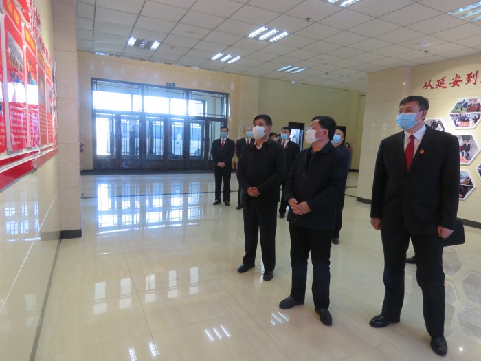 蒋和庆一行参观了北安法院“从延安到北安”红色主题教育文化长廊的四个区块:延安精神、红色基因的传承、在时代的春风里熠熠生辉、法院人不忘初心牢记使命,对北安法院能够紧紧围绕打造“塞北延安”红色文化名城战略、将延安精神与北安精神充分融合,并通过开展独具特色、形式多样、载体新颖、内容丰富的红色文化主题教育长廊给予高度评价,对北安法院干警能够传承和发扬红色革命传统,弘扬红色文化,引导法院人“不忘初心、牢记使命”的坚定理想信念给予高度赞赏和充分肯定。