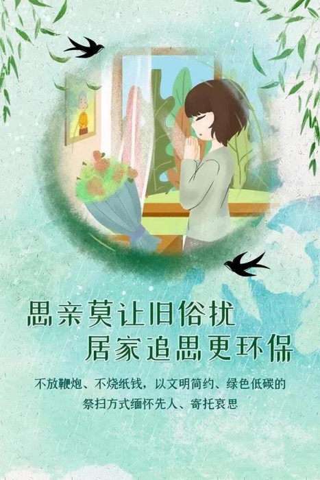 一、文明祭祀。积极传承弘扬中华民族优秀传统文化精髓,大力提倡鲜花祭祀、植树祭祀、音乐祭祀、撰写追忆文章、网络祭祀以及组织家庭追思会等文明绿色低碳方式,寄托哀思,礼敬故人,营造引导文明祭祀的社会风尚。