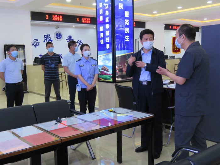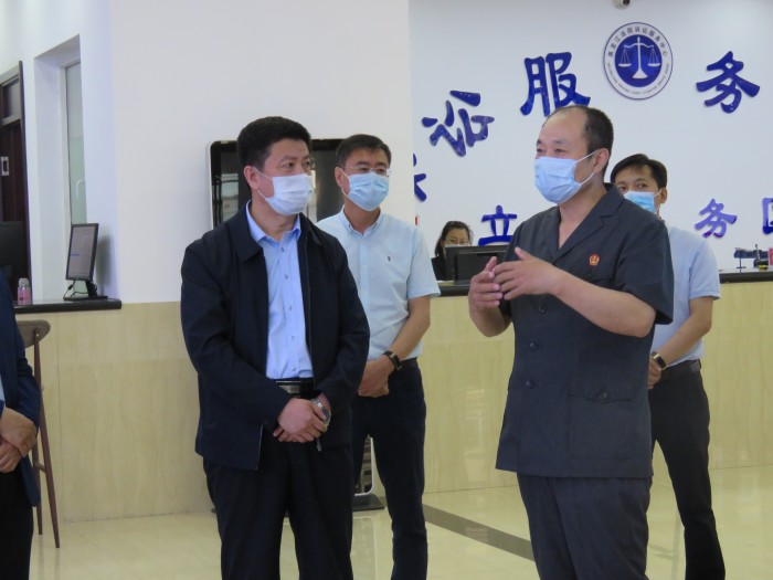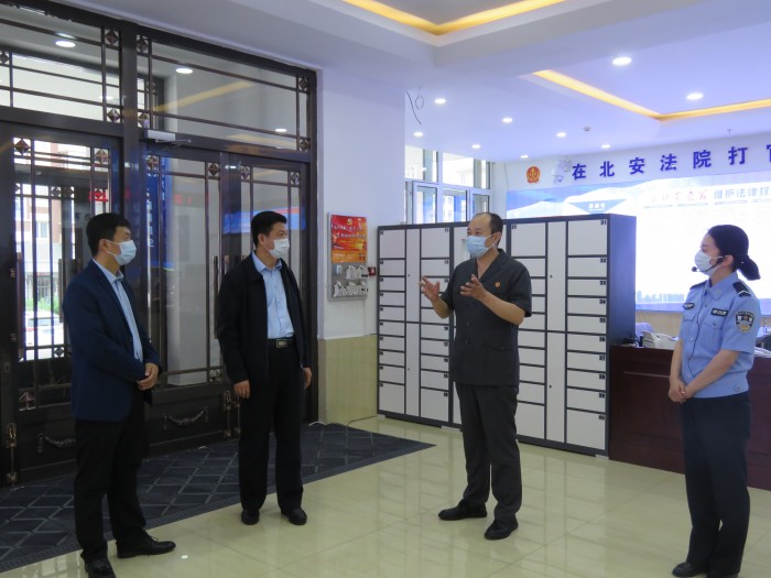 6月10日,黑河市委办副主任刘军到北安法院检查指导工作,参观了北安法院诉讼服务中心、诉讼明白路,详细了解北安市社会矛盾纠纷多元化解中心建设情况,北安市委常委、市委办主任邢岩,北安法院党组成员、副院长韩召峰,北安市委政法委工作人员陪同。