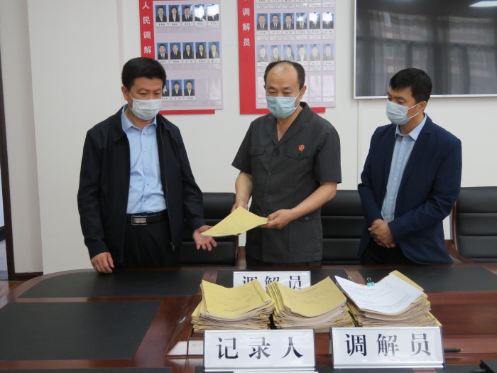 在北安市社会矛盾纠纷多元化解中心,刘军详细了解了中心的功能和运营情况,询问工作人员各类调解组织、调解专家的组成、人员配备情况以及中心在运营过程中遇到的问题和困难,并查看了调解案件卷宗等相关内业材料。刘军充分肯定了北安市社会矛盾纠纷多元化解中心建设,尤其是对“3456”工作模式给予充分肯定,刘军指出,中心依法院而建,为当事人调处矛盾、化解纠纷、案件诉讼提供了方便,矛盾调处成功后直接到法院诉讼服务中心进行免费司法确认,真正体现了办事流程一站式。