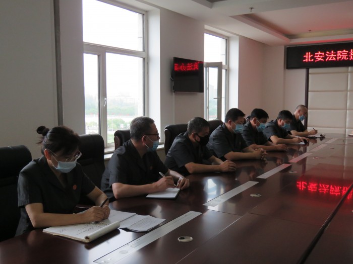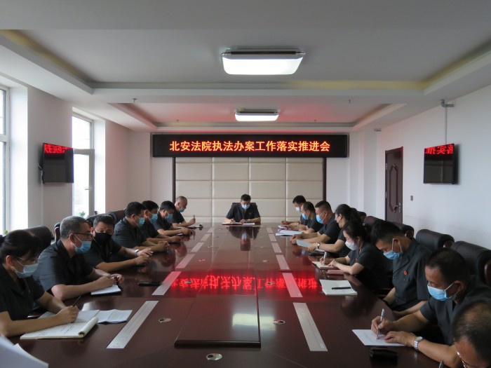 7月20日上午,北安法院召开执法办案工作落实推进会,会议由党组书记、院长于树军主持,院党组成员、专职审委、审管办主任、各审判团队长参加了会议。会上院长于树军传达了黑河中院下发的《关于切实加强当前执法办案工作的紧急通知》,审管办主任朱凯传达省法院通报、中院审判态势通报和本院审判态势通报。副院长刘伟国、韩召峰分别对各自主管线的审判执行情况从收结案情况、审判质效指标完成情况进行全面分析并进行下步工作部署。