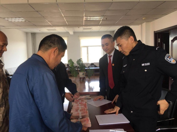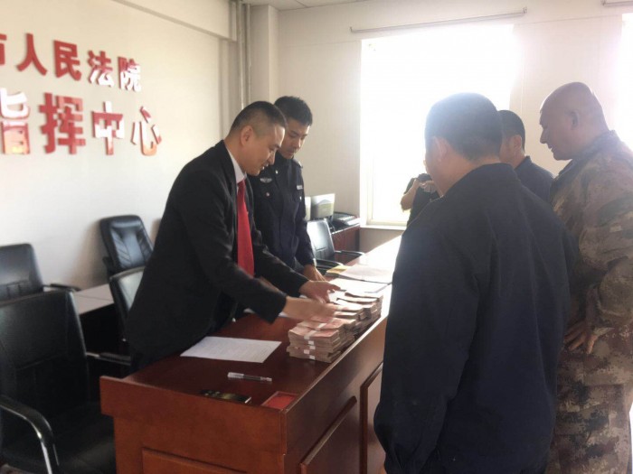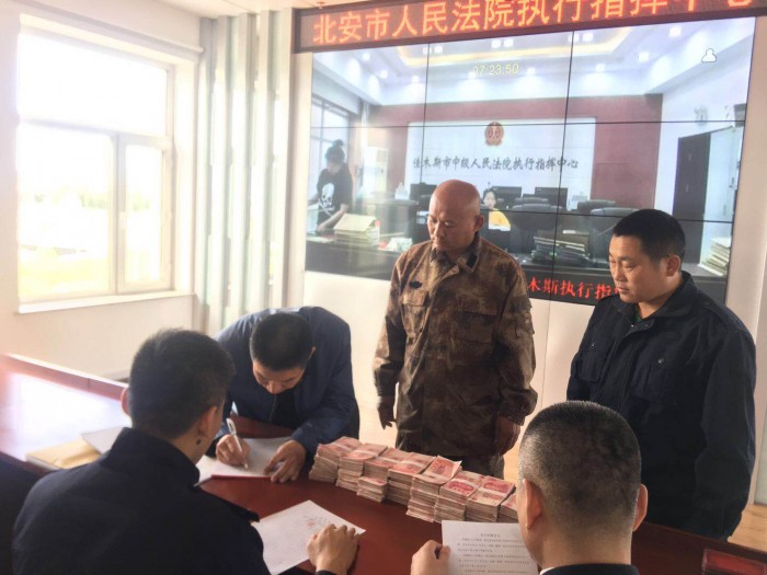 近日,在北安法院执行指挥中心,执行局干警正在向三名申请人发放第三批执行案款46万元,卢某等三人拿着执行款,连声感谢北安法院的执行法官,至此,96万元执行款全部执行到位