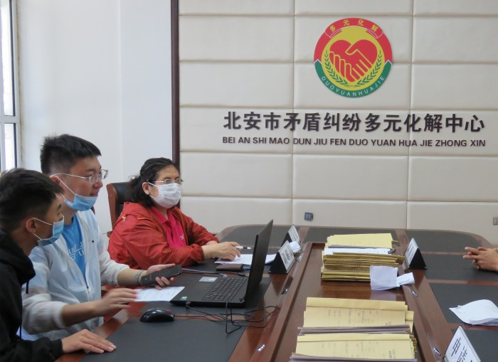 北安法院坚持创新发展新时代“枫桥经验”,依托“诉讼服务、诉调对接、速裁速调”打造“一站式”诉讼服务中心;坚持“纵向+横向+线上”联动,搭建全面覆盖、无缝对接、相互协同的多元化解平台。整合社会资源,市、乡镇(街道)、村(社区)三级依托综治中心,在赵光镇和兆麟办探索实体化运行的矛盾纠纷联合化解中心试点,负责辖区内矛盾纠纷多元化解工作。构建了独具特色的“厅、网、线、巡、站、点”诉讼服务模式以及“院、庭、站、点、员”“五位一体、四员合一”网格化多元解纷机制,形成了“预防在先、调解居中、司法兜底”矛盾纠纷防范和化解格局,最大限度在把矛盾纠纷化解在基层,真正为群众减负、为法官减压。