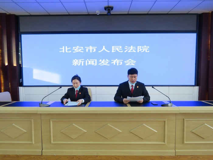 12月22日上午,北安法院在院九楼新闻发布厅召开新闻发布会,立案庭庭长吴莹专题通报了2020年度北安法院矛盾纠纷多元化解工作开展情况,政治部干事李大明主持新闻发布会。