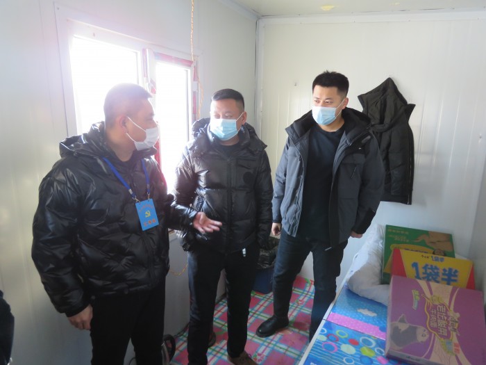 在东胜村疫情防控执勤卡点,崔巍副院长详细了解了卡口板房的取暖情况、人员排班情况、网格化管控措施落实情况,并查看了人员进出的登记台账,叮嘱卡口执勤的驻村工作队要守土有责,守土尽责,扛起责任,打起十二分精神,在严峻的疫情防控形势下,按照市委疫情防控指挥部工作要求,密切配合乡政府,以严谨的工作态度持续开展好疫情防控工作。代表院党组为执勤人员送去了方便面、挂面、火腿肠、矿泉水、电锅等速食品和工具,同时提醒驻村工作队及执勤人员务必做好自身防护,保障自身安全。