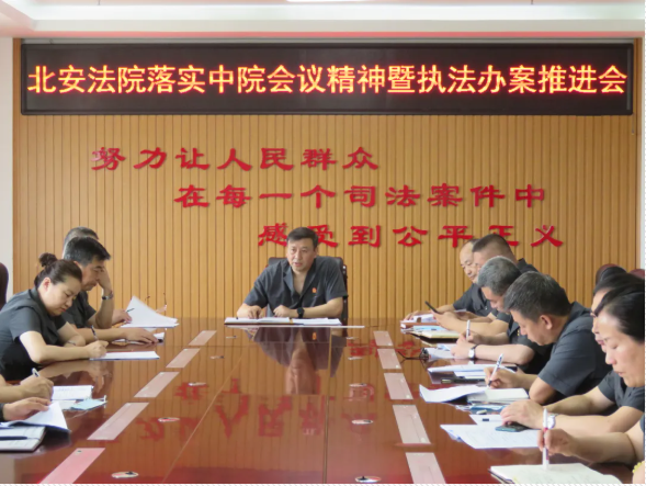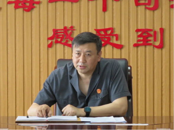 2021年7月7日上午9时,北安法院召开上半年执法办案推进会,副院长刘伟国主持会议,院党组成员、专职审委、全体员额法官参加会议。