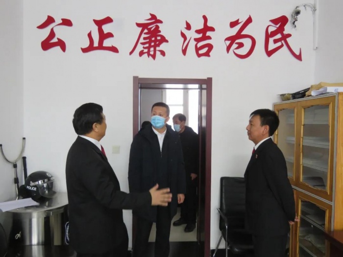 在赵光法庭及通北审判团队,闫海龙代表院党组看望慰问了基层法庭干警,详细询问了法庭干警审判执行工作中存在的困难,实地查看了法庭安检中心、接待窗口、科技法庭、党建活动室等办公场所,听取了基层法庭庭长工作汇报,详细了解了法庭基础设施建设、审判业务、人员配备、安全保卫、疫情防控等相关工作介绍。
