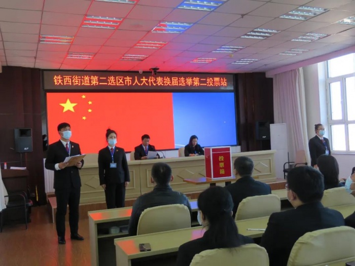 铁西街道第二选区第二投票站会场设在法院九楼会议室,北安法院在诉讼服务中心两侧电子屏及北大厅等处展示“积极行使民主权利,投下神圣而庄严的一票”“人民选举人大代表 人大代表为人民”“体现人民意愿 选好人大代表”等标语,投票现场洋溢着庄重、民主、和谐的气氛,沉甸甸的选票承载着第二选区的选民们对新一届人大代表的殷切期盼,现场的红色票箱承载着选民的重托与希望。