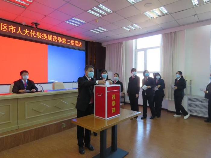 10月20日上午,北安市、乡(镇)两级人大代表选举投票工作在全市各地举行,北安法院作为铁西街道办第二选区第二投票站开展投票工作,北安市委常委、宣传部部长王媛及北安市人大、铁西街道办事处工作人员到会,北安法院党组书记、院长于树军及全院干警以普通选民身份参加选举,院党组成员、副院长崔巍主持选举投票会议。