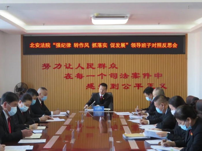 1月27日,按照北安市“强纪律 转作风 抓落实 促发展”专题教育活动领导办公室要求,北安法院召开“强纪律 转作风 抓落实 促发展”领导班子对照反思会议,党组书记、院长闫海龙主持会议。