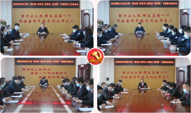 为深入贯彻落实全市“强纪律、转作风、抓落实、促发展”专题教育会议精神及廉政谈话会议精神,激发和调动全体党员积极性和主动性,营造风清气正、干事创业的浓厚氛围,近日,北安法院各党支部召开“强纪律、转作风、抓落实、促发展”专题教育工作推进会议。