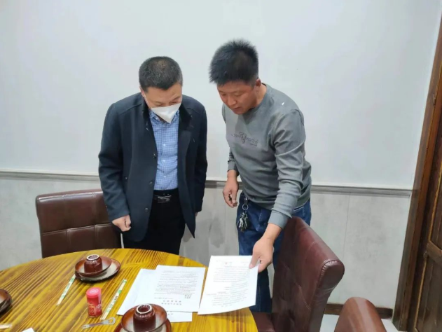 5月10日晚上七点多,通北审判团队值班干警王伟接到原告电话,称在路上见到了被告周某的汽车,并且看到周某停车进入通北镇某饭店。值班干警放下电话就紧忙联系承办法官杨洪林,杨法官为保证后续审判活动顺利进行,充分保障当事人的诉权,也顾不上已经接近晚上八点的时间,迅速赶往单位,拿上送达材料就跟值班干警王伟一同前去被告所在饭店进行送达,为案件排期争取合理、宽裕的时间。交流过程中,周某表示自己近期一直不在家,当日刚刚返回通北镇,感谢两位干警在下班时间给自己上门送达,也保障了自己的知情权和答辩权。
