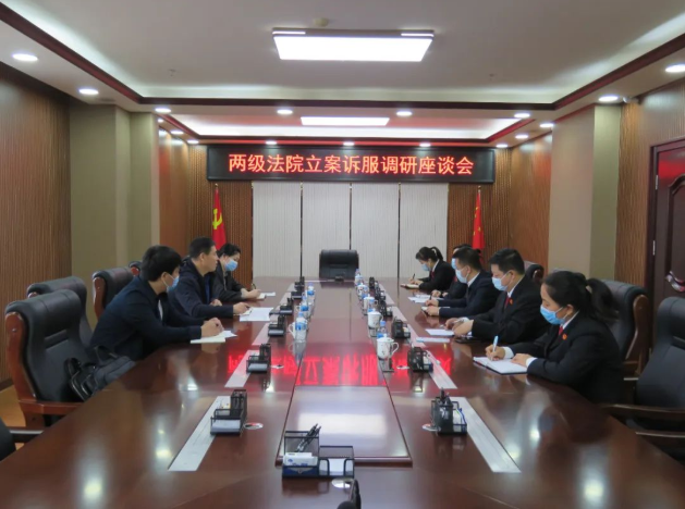 闫海龙对调研组一行莅临我院指导工作表示了欢迎与感谢,并表示我院将贯彻落实市中院调研组的指导意见,结合“优化营商环境”、“能力作风建设年”等专项活动,全面建设集约高效、多元解纷、智慧开放的诉讼服务体系,不断提升审判质效与诉服工作高质量发展,推动全院工作再上新台阶。