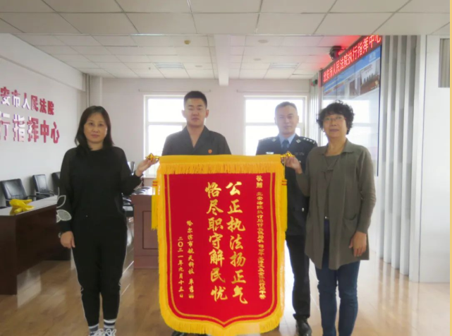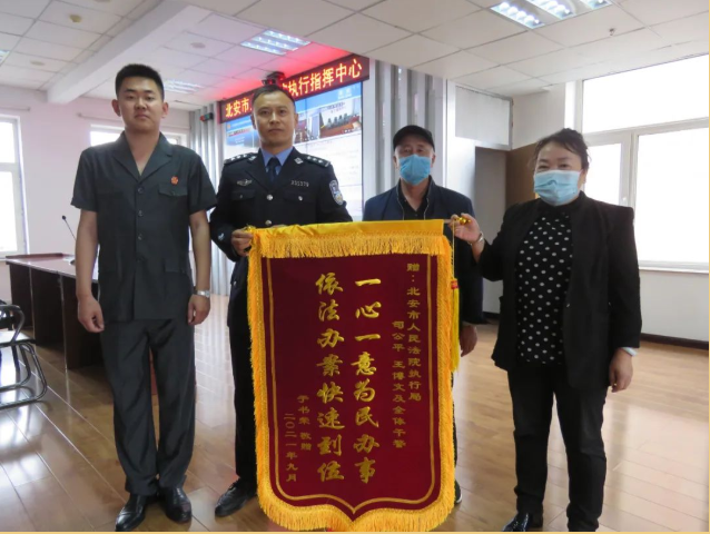 执行工作事务繁多,程序繁杂,因此司公平在协助执行工作中注重工作章法,使工作依法有序推进。三年来,司公平将被执行人纳入失信被执行人名单、限制消费令300余人次,司法拘留近10人,共执结各类案件400余件,装订卷宗600余册、送达相关执行法律文书近1000份,实际执行到位执行款640余万元,使申请人的合法权益得到了保障。那是一起民间借贷案件,因为被执行人4年前就欠申请人7万多案款,一直没有给付,两年前申请执行,经查无可供执行财产,终结本次执行程序。当案件恢复执行后,被执行人下落不明,不接电话,他得知被执行人的亲属是当地的一名律师后,通过律师将被执行人约到法院送达执行法律文书,被执行人虽同意和解,但拒不履行给付义务,他向被执行人送达了拘留决定书,带上手铐,直接送到医院采核酸、体检、拘留,后来不情愿的履行了全部债务。当申请人收到案款后,特意从北京坐火车来到北安,亲自送来了锦旗并说:“我都没想到,过了这么多年,你们还能帮我执行回来钱,被执行人欠很多人的钱,而且还耍赖,我都没报希望,就想立个案走个程序,真是太感谢你啦”。当看到当事人流露出灿烂的笑容的时候,对他而言,那是一种成就感,一种来自于群众对司法的真正认可,一种源于当事人满足的满足。