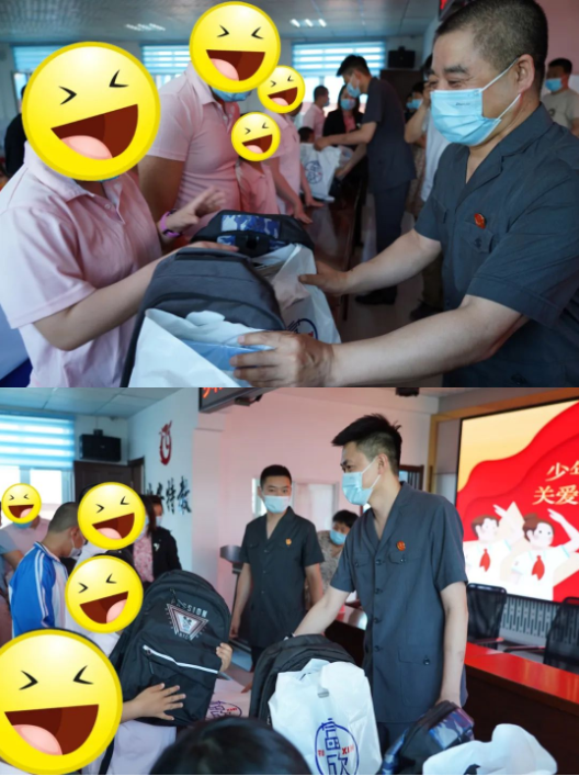 走进学校的会议室,看到10余名学生在家长的陪伴下整齐的坐在会议室中,这是一群特殊的孩子,他们有的患有言语、听力障碍,有的患有智力障碍,少年法庭干警为这些孩子们精心准备了书包和学习用品,法官与市关工委、市残联领导将礼物一一送到孩子们的手中,孩子们收到礼物时的喜悦和那一声声的“谢谢叔叔”、“谢谢阿姨”深深的感染了在场的每一个人。