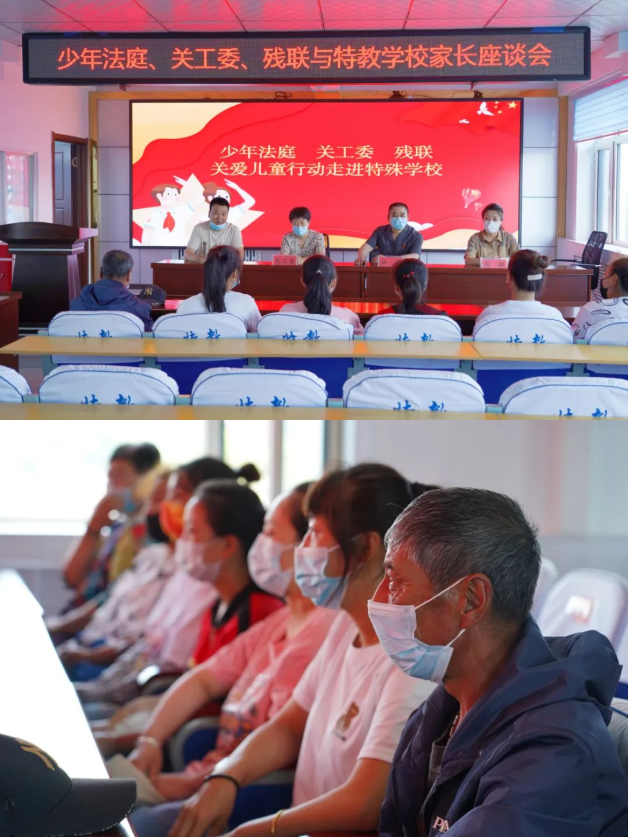 随后与家长代表的座谈会上少年法庭庭长田永东向家长们询问了孩子们的学习、生活情况,并针对子女抚养、家庭教育等方面进行了普法宣传,市关工委办公室主任杨舒丹对家长们进行了家庭辅导教育,市残联副理事长韩溶丽对家长们在座谈会上关注的残疾证办理、残疾康复等问题进行了全面解答。