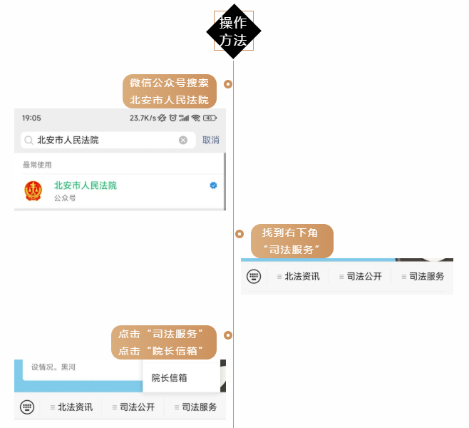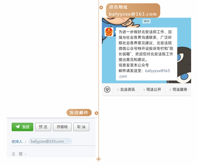 为充分发挥法院职能作用,畅通当事人诉求渠道,及时回应人民群众对司法为民的新期待,拓宽信访工作渠道,北安法院微信公众号正式开通“院长信箱”bafyyzxx@163.com,广泛听取社会各界对法院工作的意见建议、对案件审理的意见以及对法官的监督意见等,充分了解社情民意。