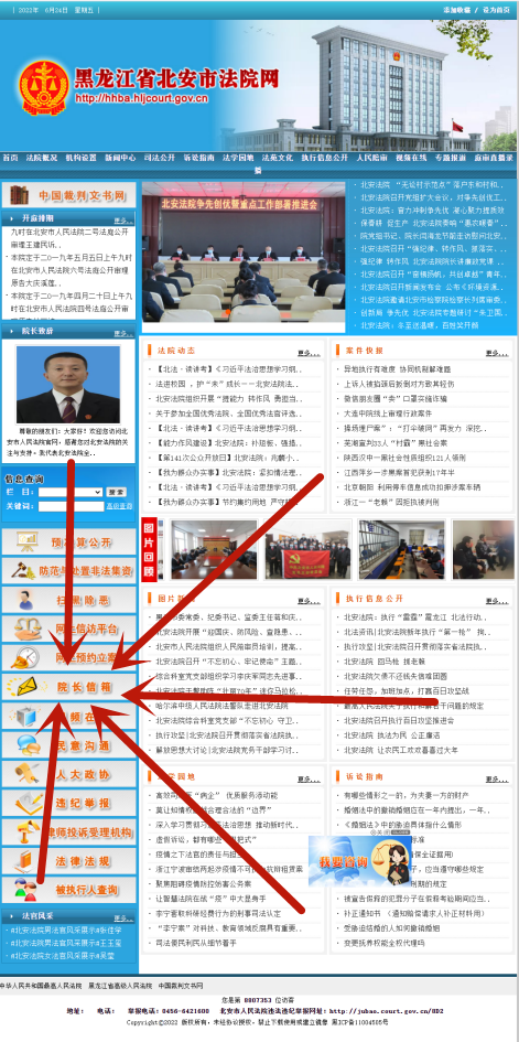 “院长信箱”的设立是法院和社会各界沟通的纽带与桥梁,是法院树立以人民群众为中心的发展思想、畅通民意沟通的新渠道,也是北安法院践行“我为群众办实事”活动的又一具体措施,旨在方便群众,提高办事效率,解决老百姓急难愁盼问题。广大群众可以将案件审限、涉诉信访等烦心事、揪心事,通过“院长信箱”反映给院长。院长将会在每周固定时间访问“院长信箱”,查看留言,解决当事人合理诉求,真正实现让法院工作走向群众,让群众评判法院工作。
