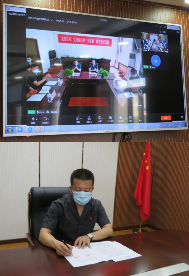 签约仪式结束后,北安法院邀请延安市宝塔区法院参加北安法院“云端开放日”活动,线上参观北安法院,为加深对北安法院各项工作了解、加强互动交流、丰富合作形式奠定了基础。