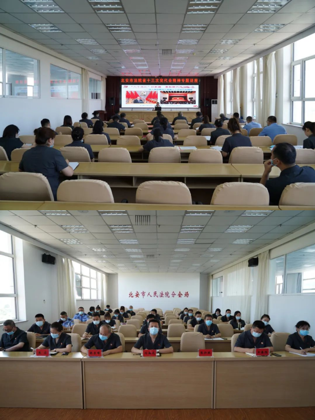 为深入学习贯彻省第十三次党代会精神,推进“能力作风建设年”活动和“学习型法院”创建工作开展,切实引导全院干警把思想和行动统一到省第十三次党代会精神上来,6月28日上午,北安法院邀请市委党校刘英教授作省第十三次党代会精神宣讲,北安法院党组成员及干警代表参加。