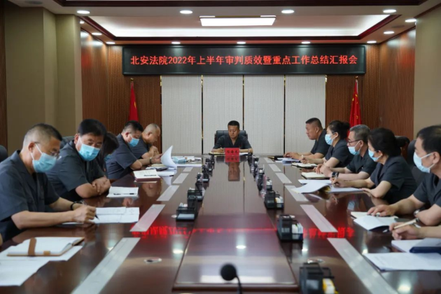7月5日,北安法院召开2022年上半年审判质效暨重点工作总结汇报会,会议由党组书记、院长闫海龙主持并作总结讲话,党组成员、专委及部门负责人参加会议。