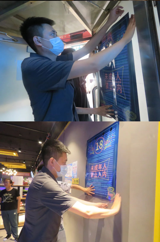 在网吧走访过程中,重点检查网吧是否按照规定在明显位置悬挂“未成年人禁入”标志,是否按规定对上网人员的身份证等有效证件进行核对、登记,是否存在随意接纳未成年人上网,有无非法招用未成年工等情况。少年法庭法官在检查同时向网吧经营者普及了未成年人保护相关法律法规并在经营场所内明显位置张贴“未成年人禁入”的宣传海报,要求经营者依法履行好管理职责,严禁未成年人进入网吧,坚决杜绝侵害未成年人权益情况发生,共同维护未成年人健康成长。