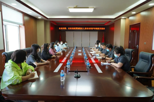 为更好地预防和制止家庭暴力,还社会以风清气正的家庭关系,充分发挥人民法院和妇联的双重作用,加大反家暴工作力度,用实际行动为弱势当事人撑起一方清朗天空。日前,北安法院同市妇联就反对家庭暴力签发人身安全保护令工作展开座谈交流。法院党组成员、副院长王春胜,市妇联副主席王波,法院立案庭、少年法庭、民一庭负责人及北安市辖区内街道办事处、基层妇联负责人等参加了会议。