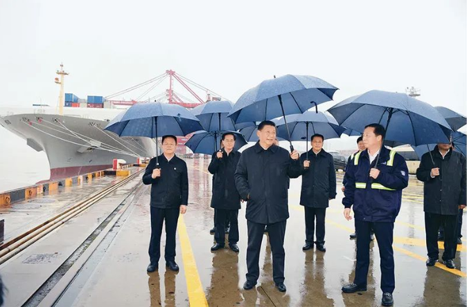 2020年3月29日至4月1日,中共中央总书记、国家主席、中央军委主席习近平在浙江考察。这是3月29日,习近平在宁波舟山港穿山港区2号集装箱泊位,了解港口作业情况。新华社记者申宏/摄