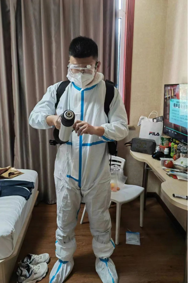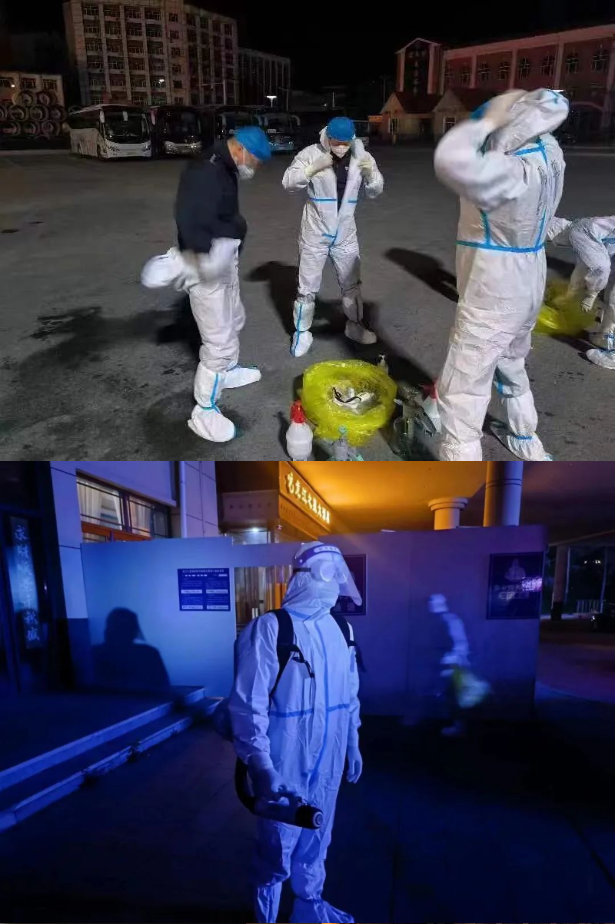 自接到我市疫情指挥中心一线消杀任务,北安市人民法院第一时间组织青年干警成立消杀小分队,崔文茂等六名干警当即入住隔离宾馆,进入隔离备战状态,消杀小组随时待命,时刻为一线消杀工作做好准备。为了更好的完成组织交给的任务,消杀小组在隔离备战期间不停演练二级防护工作,如熟悉隔离服穿脱顺序及流程,研究学习消杀药品的配比,练习使用消杀机等,确保消杀工作快速顺利完成,提升消杀工作效率,真正做到消杀全方位,无死角。截止目前圆满完成黑河八中、天成宾馆等地的消杀任务9次,2名干警被抽调到五大连池风景区支援消杀工作。