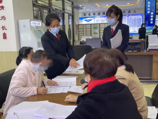 为了尽快让大家拿到工资,张丹积极组织诉前调解,调解未果,耐心指导大家书写诉状。灵活采用电话沟通、直接送达、微信联系等方式快速送达的同时释法明理,收集案件线索。因李某企业已经注销,被告李某拒接电话、不配合提交证据材料,张丹走访市场监督管理局,劳动局,调取证据材料,固定案件事实。通过连续10个小时的庭审全面查清事实,依法作出判决,向欠薪者说“不”。