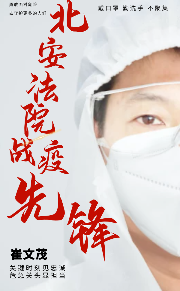 崔文茂,男,汉族,中共党员,1984年出生,现任北安市人民法院司法警察大队副队长,北安法院疫情防控消杀组组长。